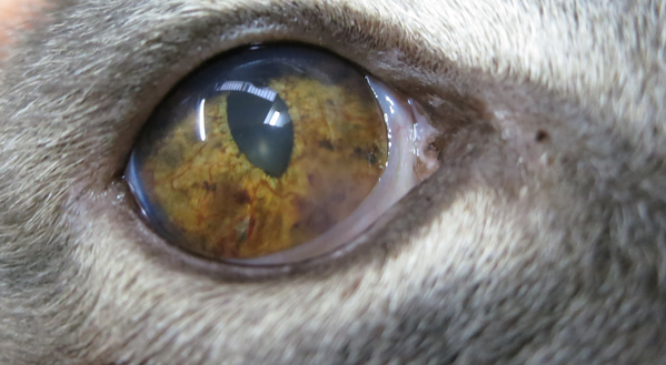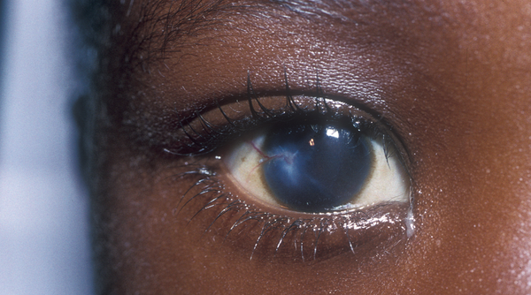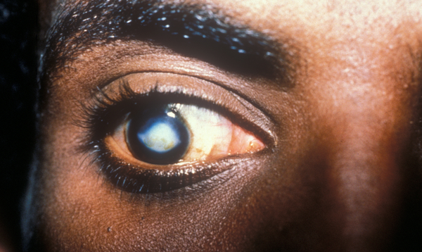 Помутнение приводит к появлению видимой белой пленки на глазу, но это происходит только на поздней стадии, которая может длиться месяцы или годы.
