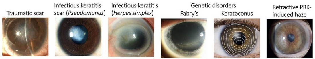 После травм или при различных заболеваниях патологии стромы роговицы включают воспаление, фиброз, образование помутнений, неоваскуляризацию и дегенерацию стромы (например, кератоконус). Эти состояния часто приводят к образованию рубцов и деформации роговицы, что приводит к повышенному рассеянию света, блокированию прохождения света и астигматизму, которые являются причинами слепоты роговицы во всем мире.